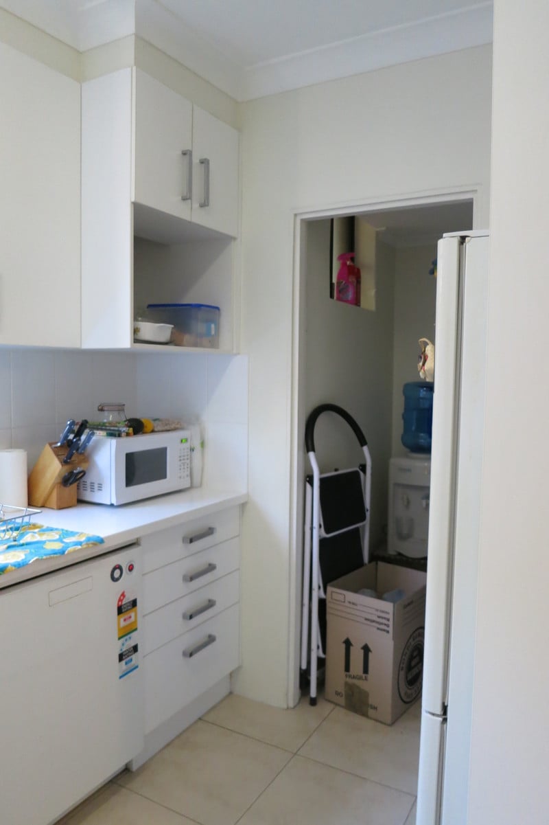 - Modern galley style kitchen with dishwasher, refrigerator & plenty of cupboard space